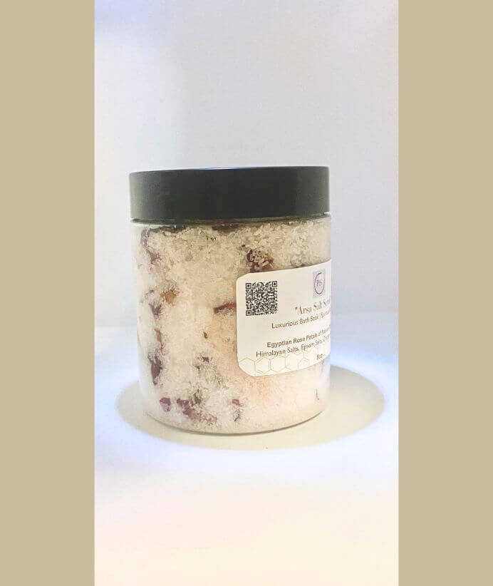 “Arsa Salt Scrub” is a luxurious spa experience while as the main purpose is to easily remove negative energies often hard to remove without a nice often bath than a shower, as the waters are ion with the mineral salts our body craves and our spiritual womb needs to shed out the old of relationships no longer serving the greater good. It combines natural sea salts with skin-softening bubbles to create a unique and soothing spa-like experience.